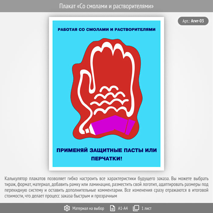 Плакат «Со смолами и растворителями» (Агит-03, 1 лист) в Красноярске купить