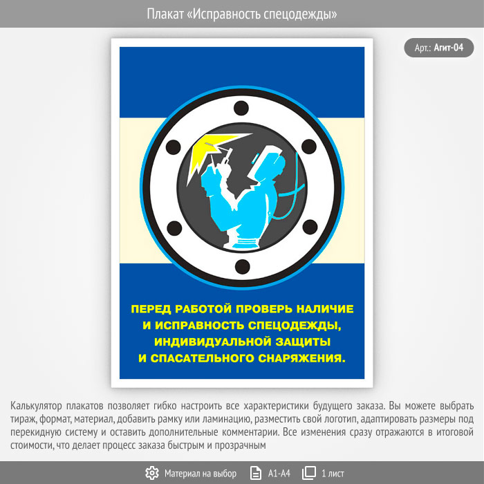 Плакат «Исправность спецодежды» (Агит-04, 1 лист) в Красноярске купить