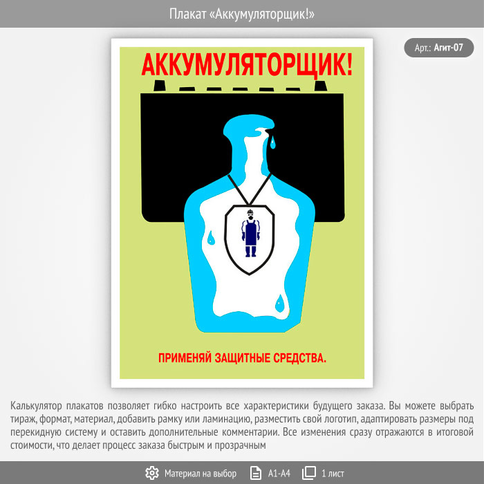 Плакат «Аккумуляторщик!» (Агит-07, 1 лист) в Красноярске купить