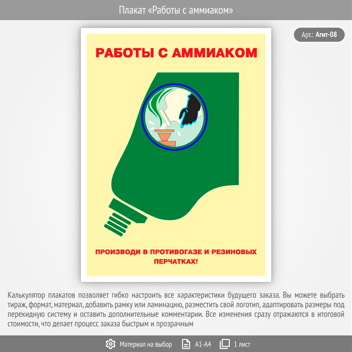 Плакат «Работы с аммиаком» (Агит-08, 1 лист) в Красноярске купить