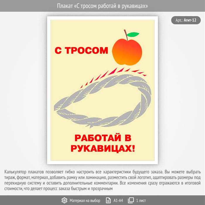 Плакат «С тросом работай в рукавицах» (Агит-12, 1 лист) в Красноярске купить