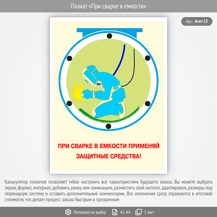 Плакат «При сварке в емкости» (Агит-13, 1 лист) в Красноярске купить