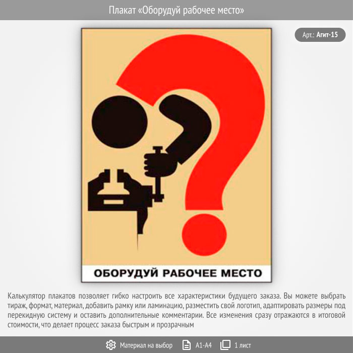 Плакат «Оборудуй рабочее место» (Агит-15, 1 лист) в Красноярске купить
