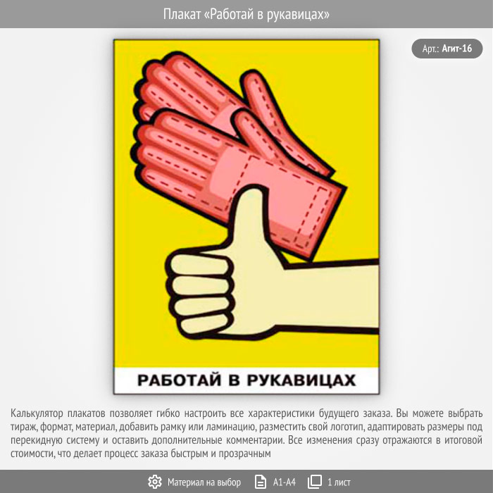 Плакат «Работай в рукавицах» (Агит-16, 1 лист) в Красноярске купить