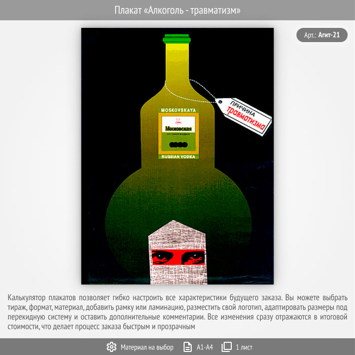 Плакат «Алкоголь - травматизм» (Агит-21, 1 лист) в Красноярске купить