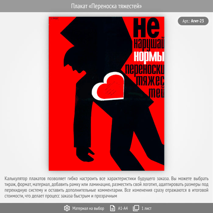 Плакат «Переноска тяжестей» (Агит-23, 1 лист) в Красноярске купить