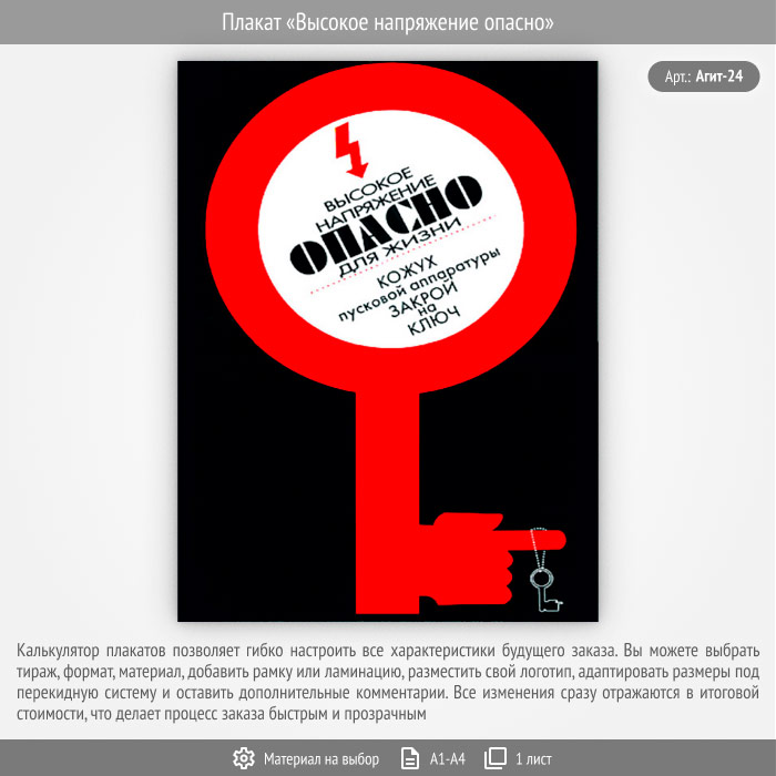Плакат «Высокое напряжение опасно» (Агит-24, 1 лист) в Красноярске купить
