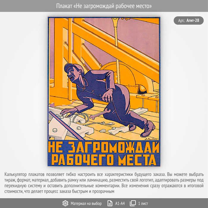 Плакат «Не загромождай рабочее место» (Агит-28, 1 лист) в Красноярске купить