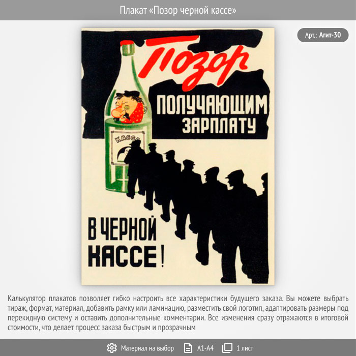 Плакат «Позор черной кассе» (Агит-30, 1 лист) в Красноярске купить