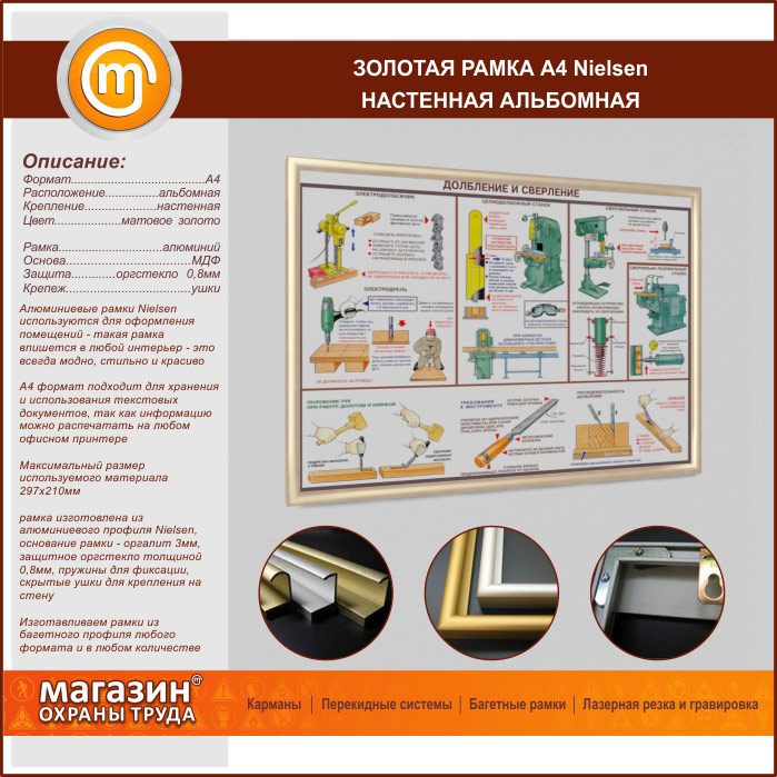 Багетная настенная рамка «Nielsen» А4 формата, альбомная, матовое золото в Красноярске купить