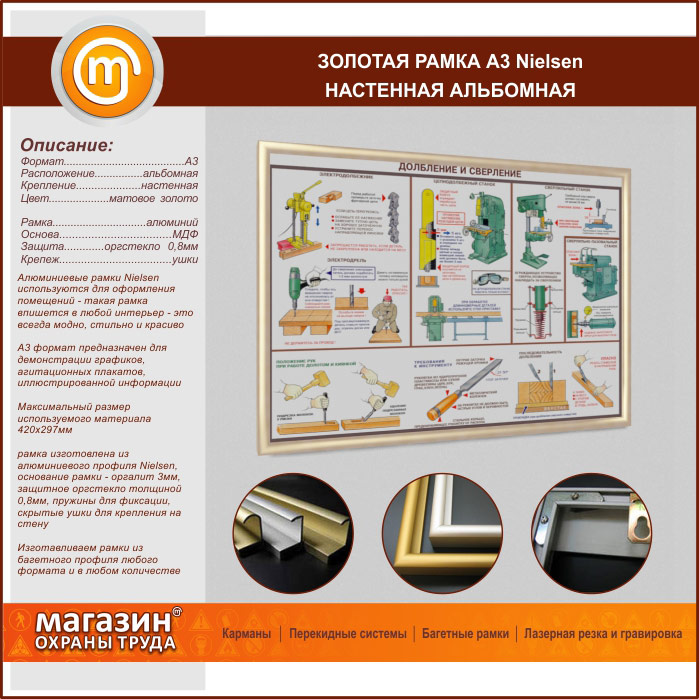 Багетная настенная рамка «Nielsen» А3 формата, альбомная, матовое золото в Красноярске купить