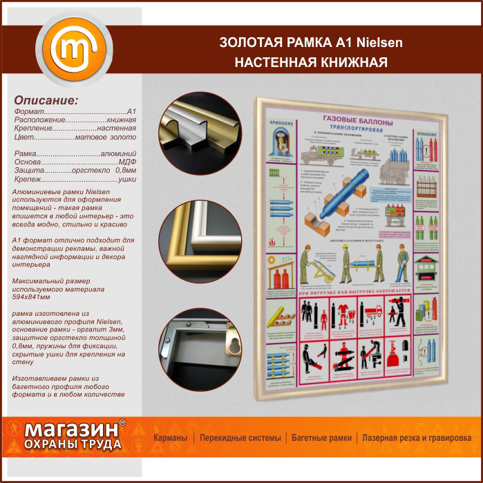 Багетная настенная рамка «Nielsen» А1 формата, книжная, матовое золото в Красноярске купить