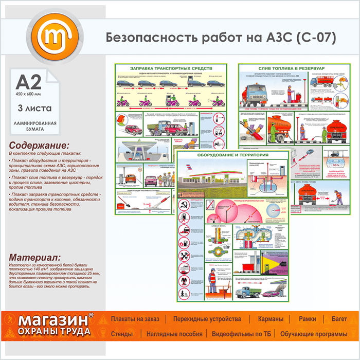 Плакаты «Безопасность работ на АЗС» (С-07, ламинированная бумага, А2, 3 листа) в Красноярске купить