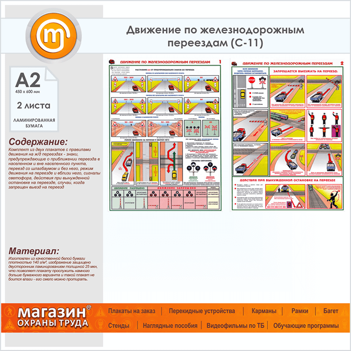 Плакаты «Движение по железнодорожным переездам» (С-11, ламинированная бумага, А2, 2 листа) в Красноярске купить