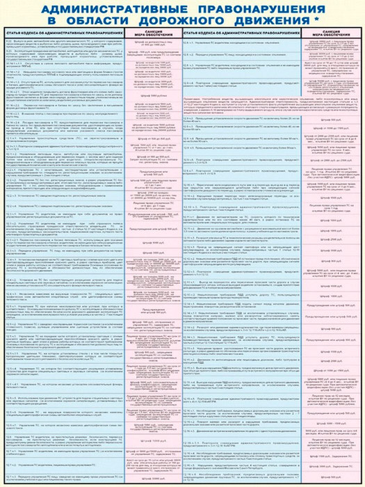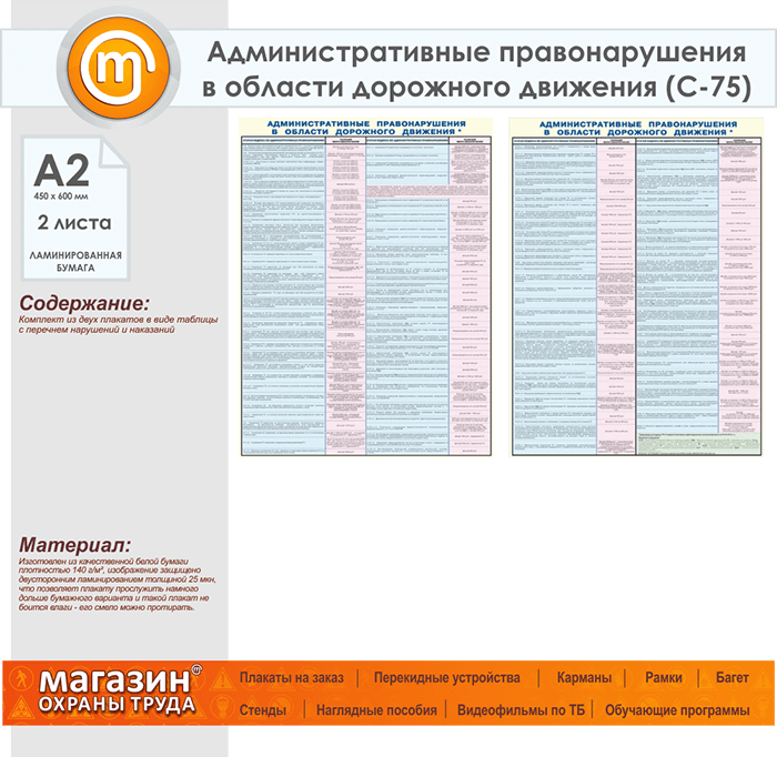 Плакаты «Административные правонарушения в области дорожного движения» (С-75, ламинированная бумага, А2, 2 листа) в Красноярске купить