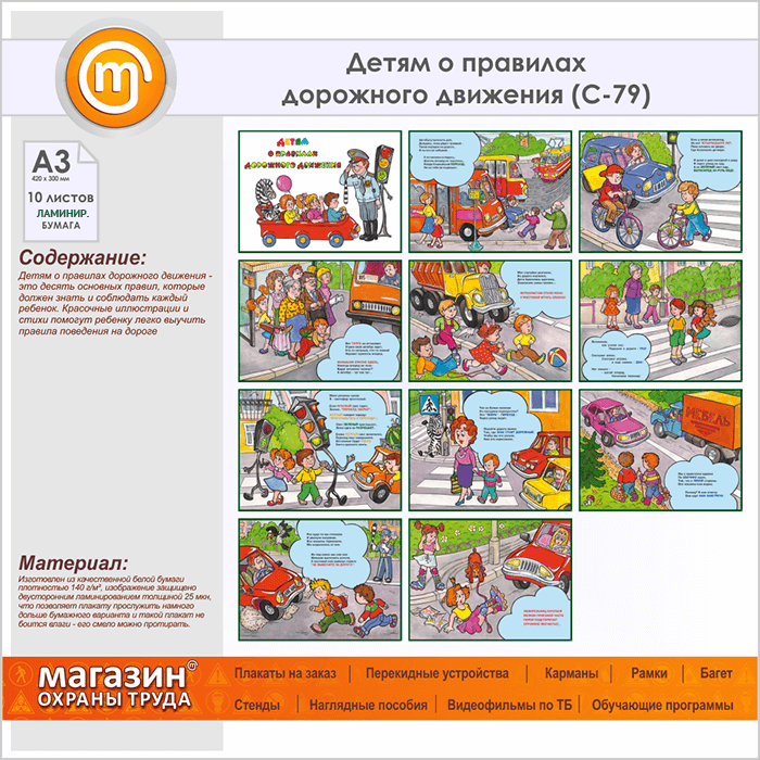 Плакаты «Детям о правилах дорожного движения» (С-79, ламинированная бумага, А3, 10 листов) в Красноярске купить