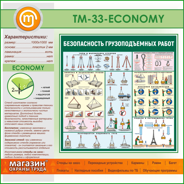 Стенд «Безопасность грузоподъемных работ» (TM-33-ECONOMY) в Красноярске купить