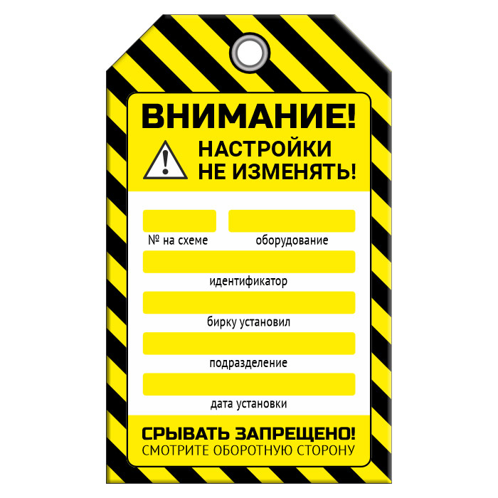 Бирка «НАСТРОЙКИ НЕ ИЗМЕНЯТЬ!» (1 шт., двусторонняя, пластик, 70х115 мм) в Красноярске купить