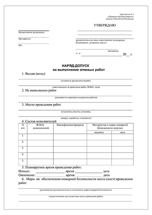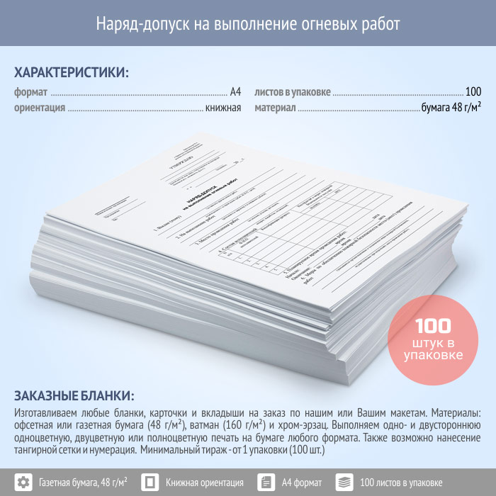 Наряд-допуск на выполнение огневых работ (упаковка из 100 штук) в Красноярске купить