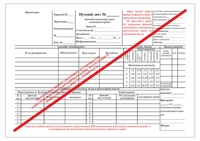 Путевой лист самоходного крана (упаковка из 100 штук) в Красноярске купить