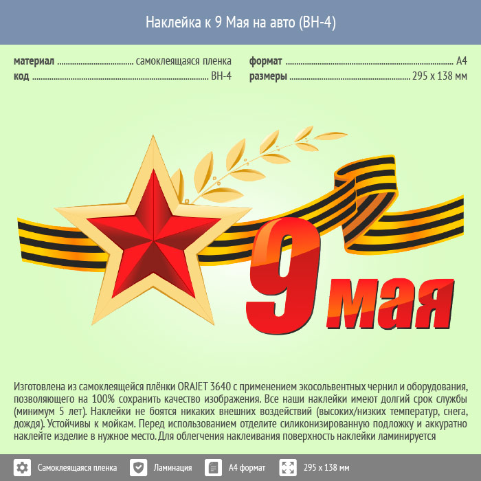 Наклейка к 9 Мая на авто А4 формата (BH-4) в Красноярске купить