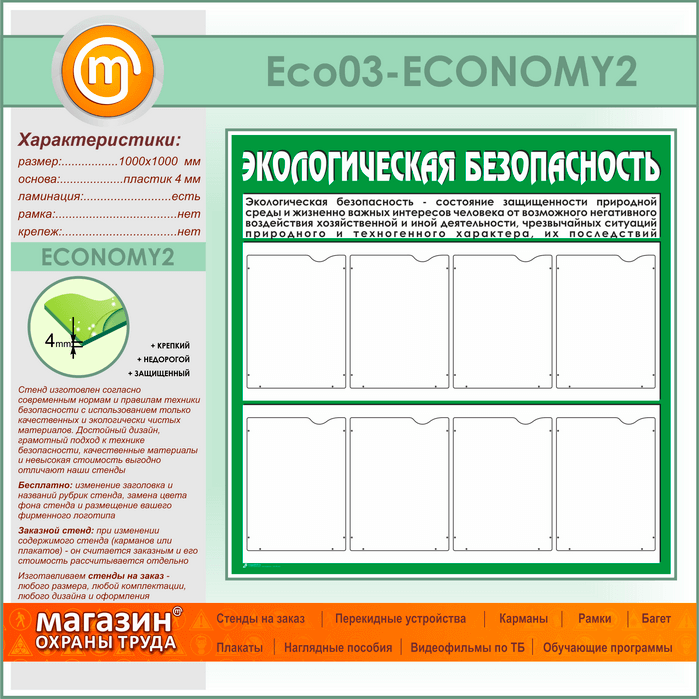 Стенд «Экологическая безопасность» с 8 карманами (ECO-03-ECONOMY2) в Красноярске купить