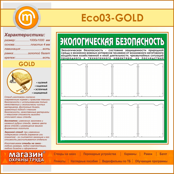 Стенд «Экологическая безопасность» с 8 карманами (ECO-03-GOLD) в Красноярске купить
