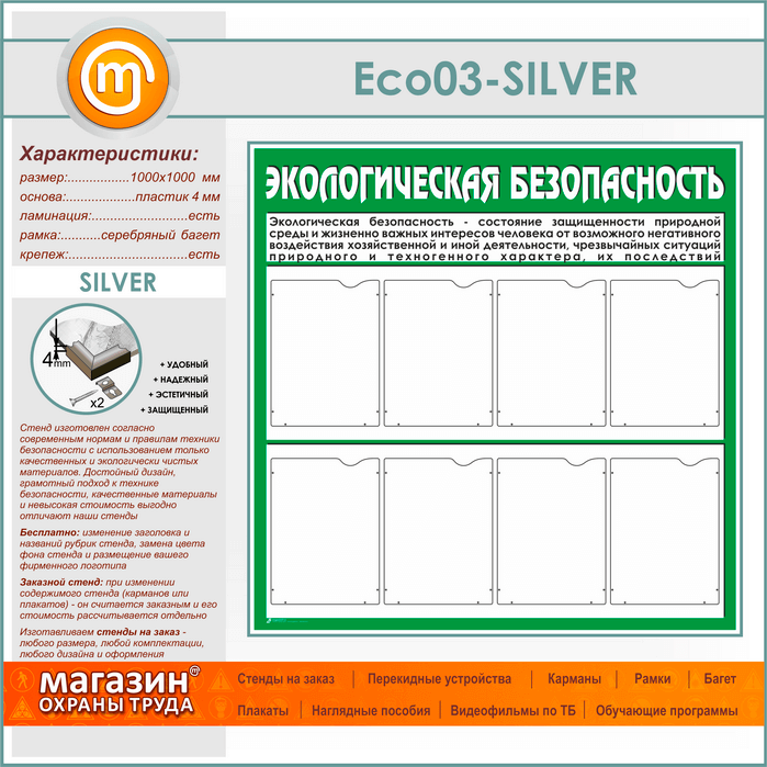 Стенд «Экологическая безопасность» с 8 карманами (ECO-03-SILVER) в Красноярске купить