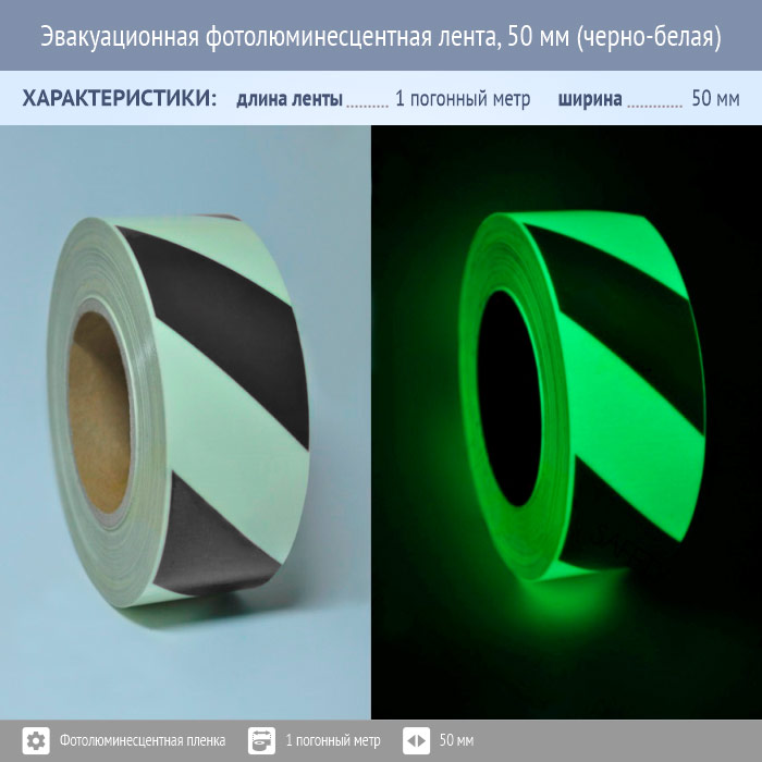 Эвакуационная фотолюминесцентная лента, 50 мм (черно-белая) в Красноярске купить