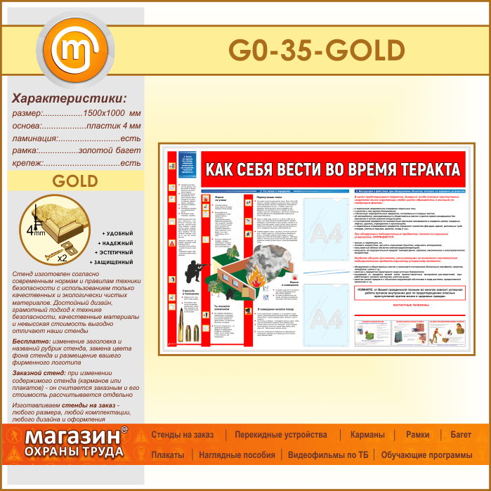 Стенд «Как себя вести во время теракта» c 2 карманами (GO-35-GOLD) в Красноярске купить