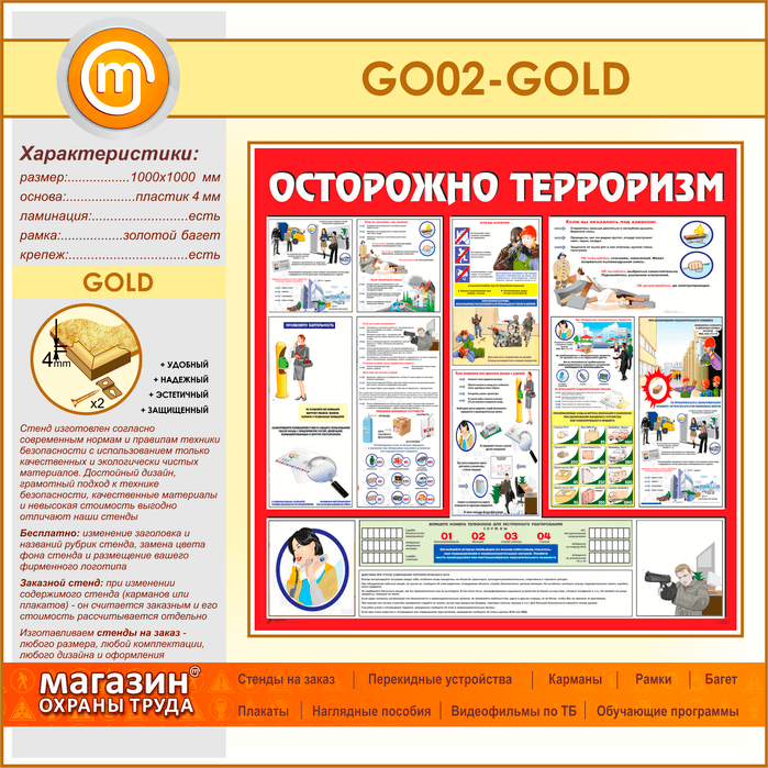 Стенд «Осторожно терроризм!» (GO-02-GOLD) в Красноярске купить