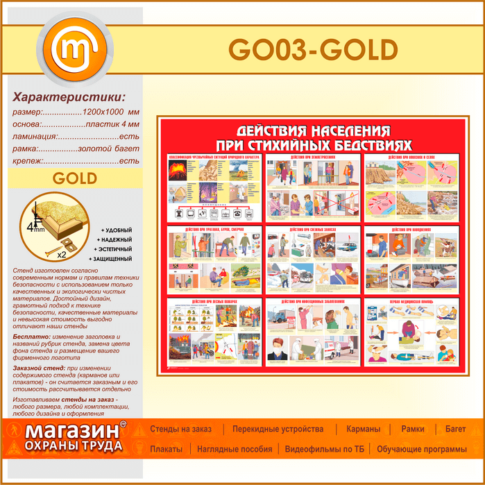 Стенд «Действия населения при стихийных бедствиях» (GO-03-GOLD) в Красноярске купить