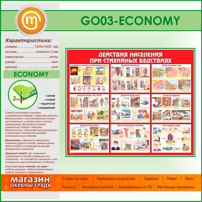Стенд «Действия населения при стихийных бедствиях» (GO-03-ECONOMY) в Красноярске купить