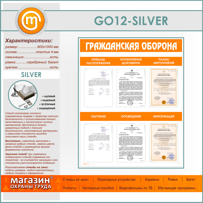 Стенд «Гражданская оборона» с 6 плоскими карманами (GO-12-SILVER) в Красноярске купить