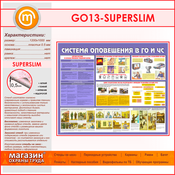Стенд «Система оповещения в ГО и ЧС» (GO-13-SUPERSLIM) в Красноярске купить
