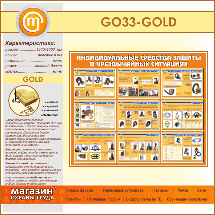 Стенд «Индивидуальные средства защиты в чрезвычайных ситуациях» (GO-33-GOLD) в Красноярске купить