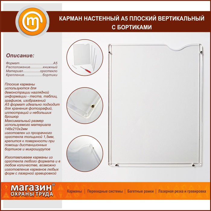 Карман настенный А5 плоский вертикальный с бортиками в Красноярске купить