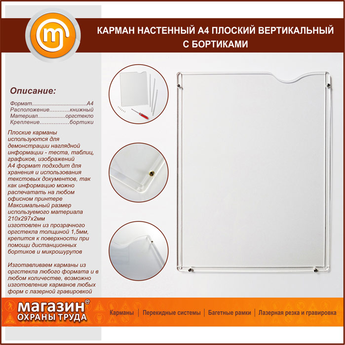 Карман настенный А4 плоский вертикальный с бортиками в Красноярске купить