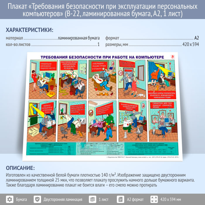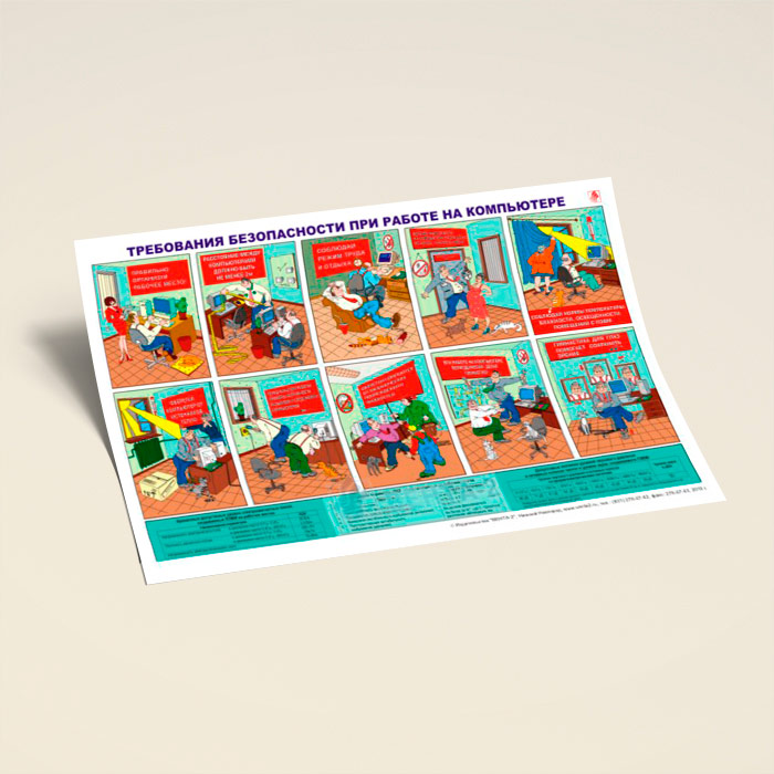 Плакат «Требования безопасности при эксплуатации персональных компьютеров» (В-22, ламинированная бумага, А2, 1 лист) в Красноярске купить