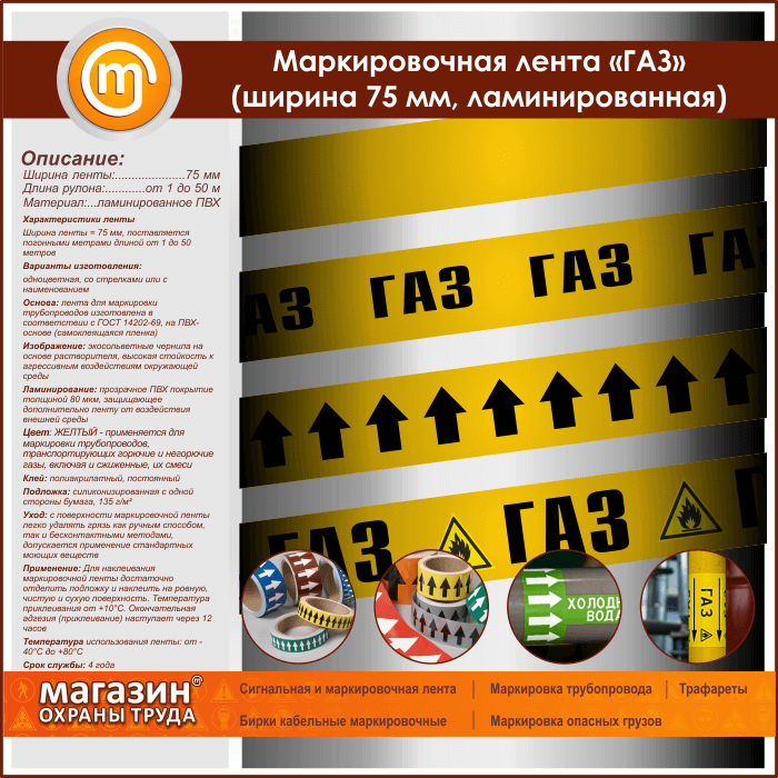 Маркировочная лента «ГАЗ» (ширина 75 мм, самоклеящаяся плёнка с ламинированием) в Красноярске купить