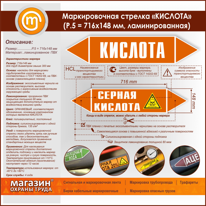 Маркировочная стрелка «КИСЛОТА» (P.5 = 716х148 мм, самоклеящаяся плёнка с ламинированием) в Красноярске купить