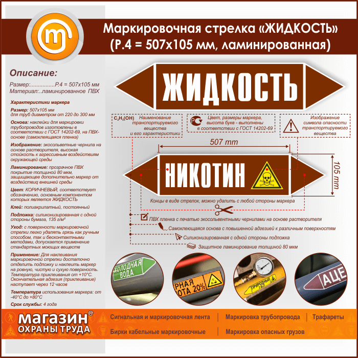 Маркировочная стрелка «ЖИДКОСТЬ»(P.4 = 507х105 мм, самоклеящаяся плёнка с ламинированием) в Красноярске купить