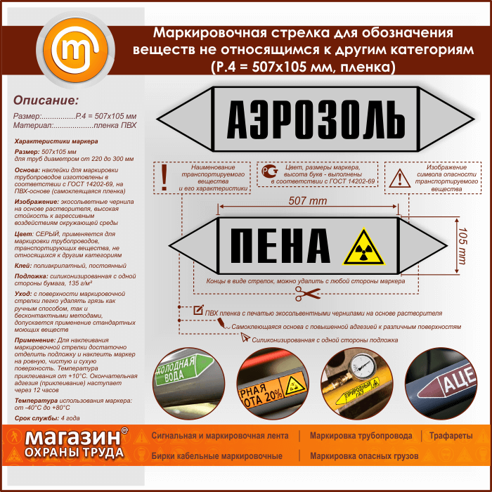 Маркировочная стрелка «ПРОЧИЕ ВЕЩЕСТВА» (P.4 = 507х105 мм, самоклеящаяся плёнка) в Красноярске купить