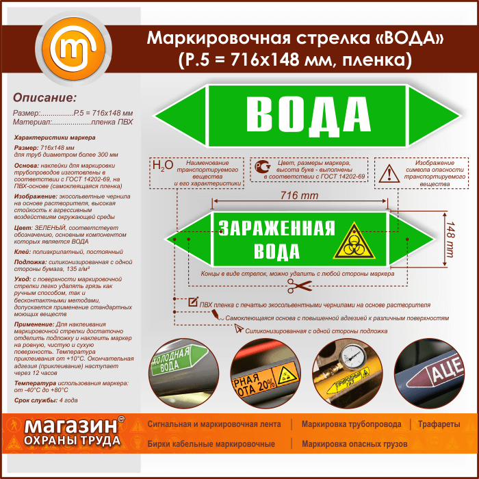 Маркировочная стрелка «ВОДА» (P.5 = 716х148 мм, самоклеящаяся плёнка) в Красноярске купить