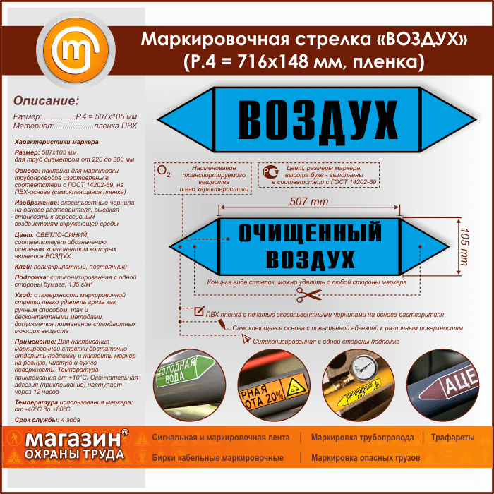 Маркировочная стрелка «ВОЗДУХ» (P.4 = 507х105 мм, самоклеящаяся плёнка) в Красноярске купить