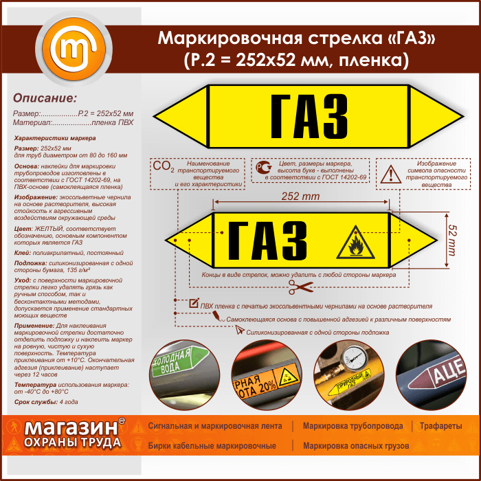 Маркировочная стрелка «ГАЗ» (P.2 = 252х52 мм, самоклеящаяся плёнка) в Красноярске купить