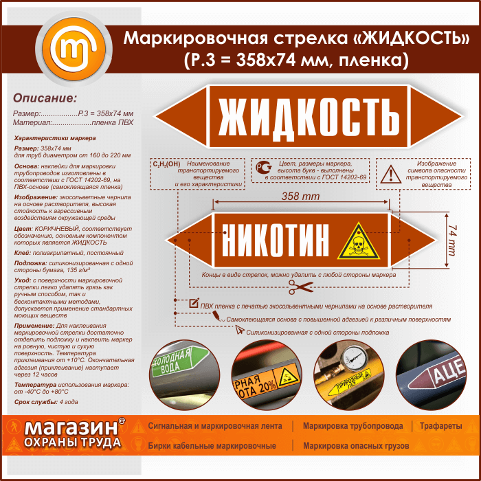 Маркировочная стрелка «ЖИДКОСТЬ» (P.3 = 358х74 мм, самоклеящаяся плёнка) в Красноярске купить