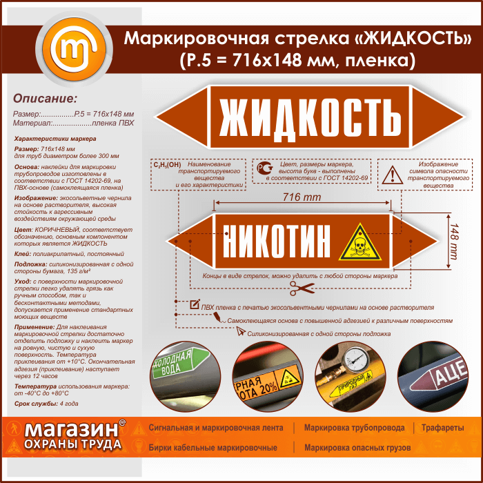Маркировочная стрелка «ЖИДКОСТЬ» (P.5 = 716х148 мм, самоклеящаяся плёнка) в Красноярске купить