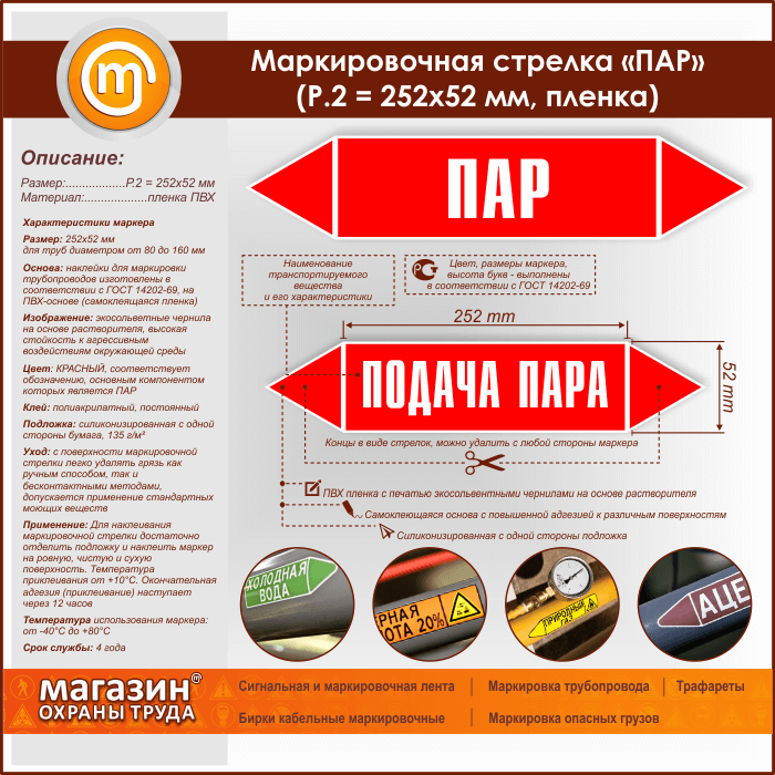 Маркировочная стрелка «ПАР» (P.2 = 252х52 мм, самоклеящаяся плёнка) в Красноярске купить