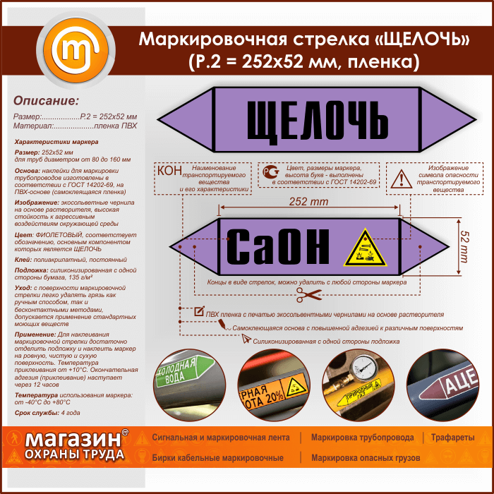 Маркировочная стрелка «ЩЕЛОЧЬ» (P.2 = 252х52 мм, самоклеящаяся плёнка) в Красноярске купить